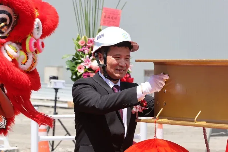 洲鉅風電在高雄港洲際一期A6-B用地上興建200公尺室內組裝廠房及戶外組裝區,搭配全台灣第一大1500公噸軌道式龍門吊車,可行走全長近1.2公里,大幅提高組裝效率。今天舉辦上梁祈福典禮後,辦公室及廠房預計明年初投產。