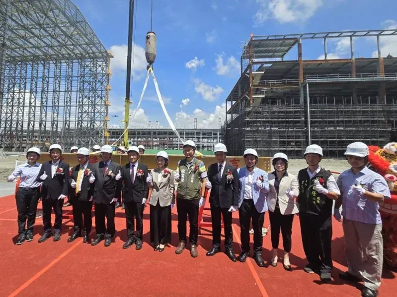 洲鉅風電今天在高雄港洲際一期舉辦上梁典禮,屏東縣長周春米(左六)等人到場觀禮祝賀。記者王勇超/攝影