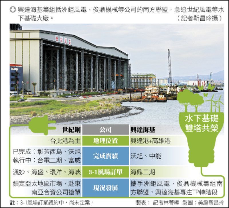 〔記者林菁樺/專題報導〕中鋼(2002)轉投資興達海基被視為離岸風電水下基礎「南塔」,而世紀鋼集團轉型風電水下基礎大廠,是水下基礎廠商中的「北塔」。先前興達海基因高度國產化,財務承受壓力,國內水下基礎訂單呈現「南瘦北肥」現象,中鋼高層也曾拜會世紀鋼(9958)。不過,南塔近來加入洲鉅風電、俊鼎機械形成南方聯盟,急追北塔。